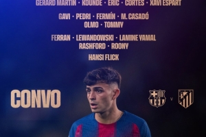 巴萨对阵马竞首回合名单:莱万、亚马尔在列,贝尔纳尔缺席