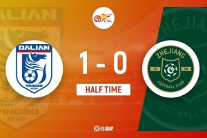 体育资讯4月10日讯 中超第5轮,大连英博主场对战浙江队,半场结束英博1-0领先。