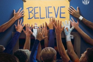 巴萨晒海报:致敬美剧《足球教练》,球员将手覆在“相信”标语上