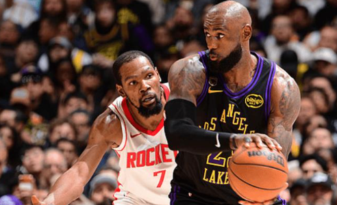 4 月 22 日,NBA 季后赛西部首轮 G2,洛杉矶湖人客场 108-104 险胜休斯顿火箭,系列赛大比分 2-0 领先,手握晋级主动权。此役杜兰特火线复出,41 岁詹姆斯贡献惊艳折叠背扣,成为比赛焦点。