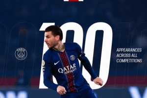 体育资讯4月23日讯 法甲第26轮比赛,巴黎圣日耳曼在主场迎战南特。本场比赛,卢卡斯替补登场,迎来巴黎圣日耳曼生涯百场里程碑之战。