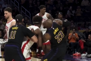 体育资讯4月23日讯 在昨日湖人101-94主场击败火箭的系列赛G2赛后,一位湖人球迷晒出了他在场边拍摄的现场片段。