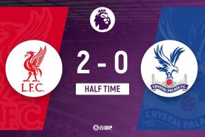 半场结束,利物浦暂2-0水晶宫。