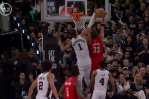 裁判开始吹卡马拉出界,开拓者试图挑战文班亚马盖帽犯规,但挑战失败,是好帽,而且球权归马刺
